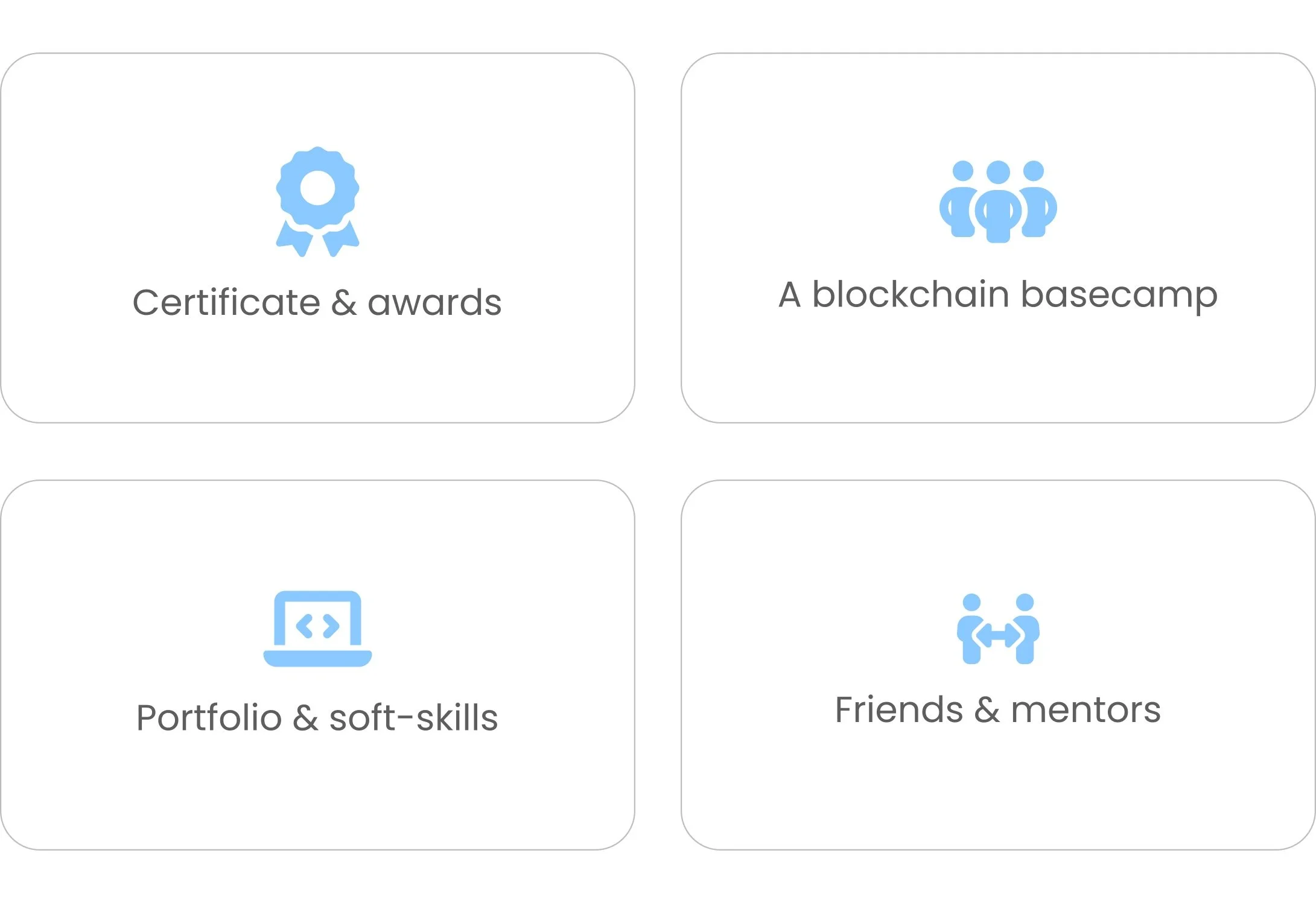You will not only build your portfolio with a end-to-end decentralized application, you will also grow your network and get opportunities to practice crucial job hunting skills.